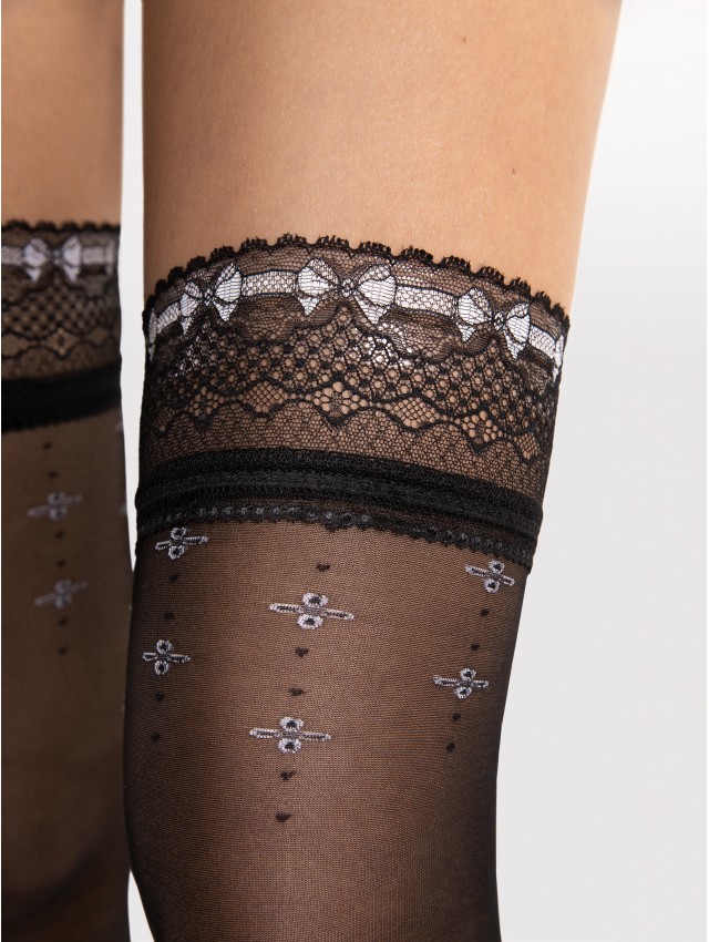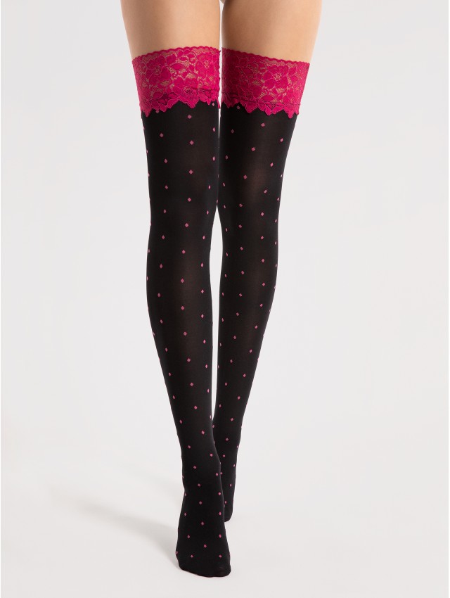 Bright dots bring to mind refreshing bubbles… These stockings are like a glass of champagne at noon. In the evening, in turn, they will astound you with their noir laces. They are perfect for springtime outings and go perfectly with cocktail dresses!